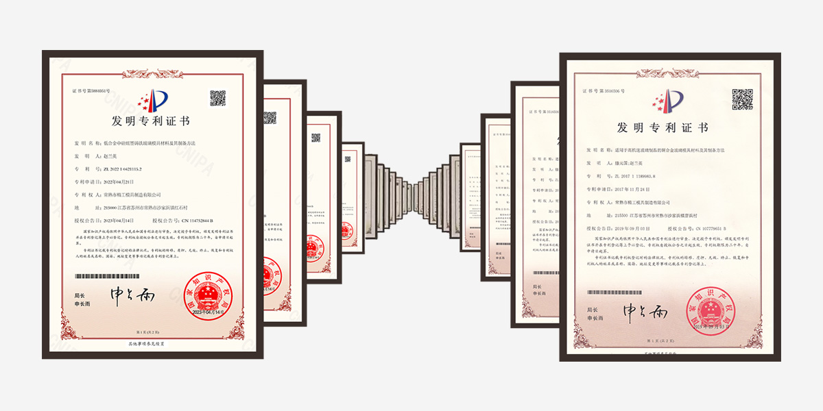 Jinggong Mould is consistently driven by product innovation, process innovation, material innovation, and equipment innovation, pursuing a path of high-quality development. To date, the company has successfully developed over 20 types of high-end glass mould materials and owns more than 100 intellectual property rights, including 36 invention patents.