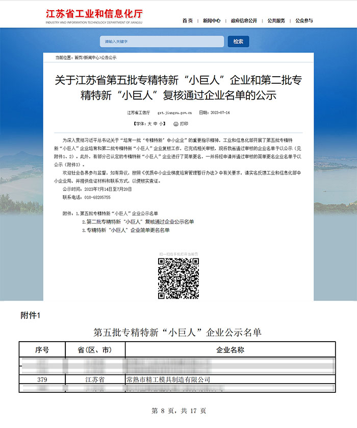 Jinggong Mould has been successfully selected as a national level specialized, refined, and new
