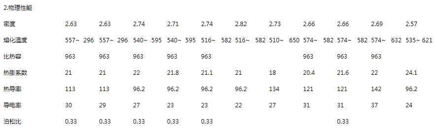 表1-2介紹了壓鑄鋁合金的物理和力學性能,可供設計產品時作滿足其技術要求、使用要求的選擇